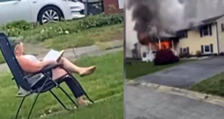പിന്നീട് കാണുന്നത് വീടിനുള്ളില് തീയിട്ട് മുറ്റത്ത് കസേരയിട്ട് ഒരു പുസ്തകവുമായി ശാന്തയായി ഇരിക്കുന്ന സ്ത്രീയെ ആണ്. പിന്നീട് ഇവര് ഇവിടെനിന്നും സ്ഥലംവിട്ടെങ്കിലും മേരിലാന്ഡ് പൊലീസ് പിടികൂടി. 47കാരിയായ ഗെയില് മെറ്റ്വാലിയാണ് പിടിയിലായത്. ഇവരടക്കം നാലു പേരാണ് വീട്ടില് താമസിക്കുന്നതെന്നും സംഭവം നടക്കുമ്പോള് രണ്ടു പേര് സ്ഥലത്തില്ലായിരുന്നെന്നും പൊലീസ് പറഞ്ഞു. വീടിന്റെ ബേസ്മെന്റില്നിന്നും മറ്റൊരു സ്ത്രീ സഹായത്തിന് നിലവിളിക്കുന്നത് കേട്ടെന്നും അയല്വാസികള് അവരെ രക്ഷപ്പെടുത്തിയെന്നും ദൃക്സാക്ഷികള് പറഞ്ഞു.