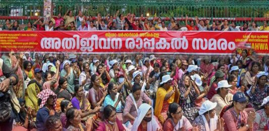 സെക്രട്ടേറിയേറ്റിന് മുന്നിലെ ആശ വർക്കർമാരുടെ രാപകൽ സമരം ശക്തമായി മുന്നോട്ട് പോകുന്നതിനിടെ മഴ നനയാതിരിക്കാൻ കെട്ടിയ ടാർപോളിൻ പൊലീസ് ഇടപെട്ട് അഴിപ്പിച്ചു. ഇന്ന് പുലർച്ചെ മൂന്നു മണിയോടെ മഴ പെയ്തപ്പോഴാണ് പൊലീസിന്റെ നടപടി. ടാര്പോളിൻ കെട്ടി അതിന്റെ താഴെ പായ വിരിച്ച് ഉറങ്ങുകയായിരുന്ന ആശാ പ്രവര്ത്തകരെ വിളിച്ചുണര്ത്തിയാണ് പൊലീസിന്റെ നടപടി. ഉറങ്ങികിടക്കുന്നവരെ വിളിച്ചുണര്ത്തി ഇങ്ങനെയൊക്കെ പറയാൻ എങ്ങനെ കഴിയുന്നുവെന്ന് ആശാ വര്ക്കര്മാരിലൊരാള് പൊലീസിനോട് ചോദിക്കുന്നുണ്ടെങ്കിലും അഴിച്ചുമാറ്റേണ്ടിവന്നു. മനുഷ്യരാണോയെന്നും പൊലീസിനോട് ആശ വര്ക്കര് കയര്ത്തു. അതേസമയം, വേതനവര്ധന ആവശ്യപ്പെട്ടുള്ള … Continue reading ആശ വർക്കർമാരുടെ രാപകൽ സമരം ഇന്ന് 21ാം ദിവസത്തിലേക്ക്; സമരക്കാർ മഴ നനയാതിരിക്കാൻ കെട്ടിയ ടാർപോളിൻ പൊലീസ് ഇടപെട്ട് അഴിപ്പിച്ചു