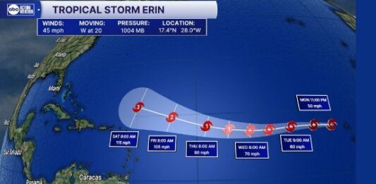 ട്രോപ്പിക്കൽ സ്റ്റോം ‘എറിൻ’; ഈ സീസണിലെ അറ്റ്ലാന്റിക്കിലെ ആദ്യ ചുഴലിക്കാറ്റായി മാറാൻ സാധ്യത