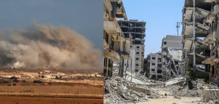 ഗാസാ മേഖലയിൽ ഇസ്രയേൽ സേനയുടെ ശക്തമായ വ്യോമാക്രമണങ്ങൾ തുടരുമ്പോൾ നൂറുകണക്കിന് വീടുകൾ പൂർണമായും തകർന്ന് കുടിയൊഴിപ്പിക്കപ്പെട്ടവർ ദയനീയാവസ്ഥയിലാണ്. ഗാസാ സിറ്റിയിലെയും അൽസൈതൂൻ പ്രദേശങ്ങളിലെയും താമസമേഖലകളാണ് ഏറ്റവും കൂടുതൽ ബാധിതമായത്. ഉപഗ്രഹ ചിത്രങ്ങൾ പ്രകാരം നിരവധി വാസസ്ഥലങ്ങൾ നിലംപരിശായതായി മനുഷ്യാവകാശ സംഘടനകൾ റിപ്പോർട്ട് ചെയ്യുന്നു.