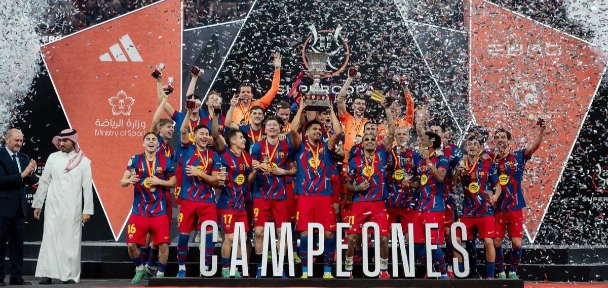 എൽ ക്ലാസിക്കോ ഫൈനലിൽ കടുത്ത പോരാട്ടത്തിനൊടുവിൽ റയൽ മാഡ്രിഡിനെ കീഴടക്കി FC Barcelona സ്പാനിഷ് സൂപ്പർ കപ്പ് കിരീടം സ്വന്തമാക്കി. തുടക്കം മുതൽ ആക്രമണാത്മക സമീപനം സ്വീകരിച്ച ബാഴ്സലോണ മത്സരത്തിന്റെ നിയന്ത്രണം കൈവശം വെച്ചു. മിഡ്ഫീൽഡിലെ ആധിപത്യം ഗോൾ അവസരങ്ങൾ സൃഷ്ടിക്കാൻ ടീമിനെ സഹായിച്ചു. മറുവശത്ത് Real Madrid തിരിച്ചടിക്കാൻ ശ്രമിച്ചെങ്കിലും ബാഴ്സയുടെ പ്രതിരോധം ഉറച്ചുനിന്നു. നിർണായക നിമിഷങ്ങളിൽ മുന്നേറ്റ നിര കൃത്യമായി ലക്ഷ്യം കണ്ടതോടെയാണ് കിരീടം ഉറപ്പായത്. ആരാധകർക്ക് ആവേശം പകരുന്ന പ്രകടനമാണ് ഫൈനലിൽ ബാഴ്സലോണ കാഴ്ചവെച്ചത്. ഈ ജയത്തോടെ സീസണിലെ ആദ്യ വലിയ കിരീടം സ്വന്തമാക്കിയ ബാഴ്സലോണ ആത്മവിശ്വാസം ഉയർത്തിയാണ് ഇനി ലാ ലിഗയിലേക്കും ചാമ്പ്യൻസ് ലീഗിലേക്കും ശ്രദ്ധ തിരിക്കുന്നത്.