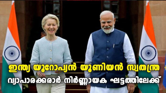 ഇന്ത്യ- യൂറോപ്യൻ യൂണിയൻ ; സ്വതന്ത്ര വ്യാപാരക്കരാർ നിർണ്ണായക ഘട്ടത്തിലേക്ക്