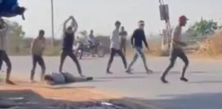 ഭോപ്പാലിൽ കടയുടമയെ റോഡിൽ ഇട്ടു മർദിച്ച യുവാക്കൾ; സിഗരറ്റ് കടമായി ആവശ്യപ്പെട്ടതിൽ നിന്നാണ് സംഘർഷം